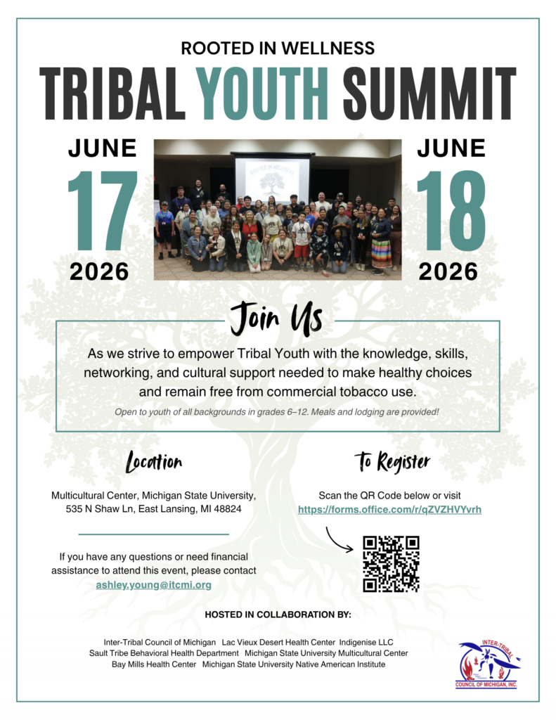 Join us as we strive to empower tribal youth with the knowledge, skills, networking, and cultural support needed to make healthy changes and remain free from commercial tobacco use.